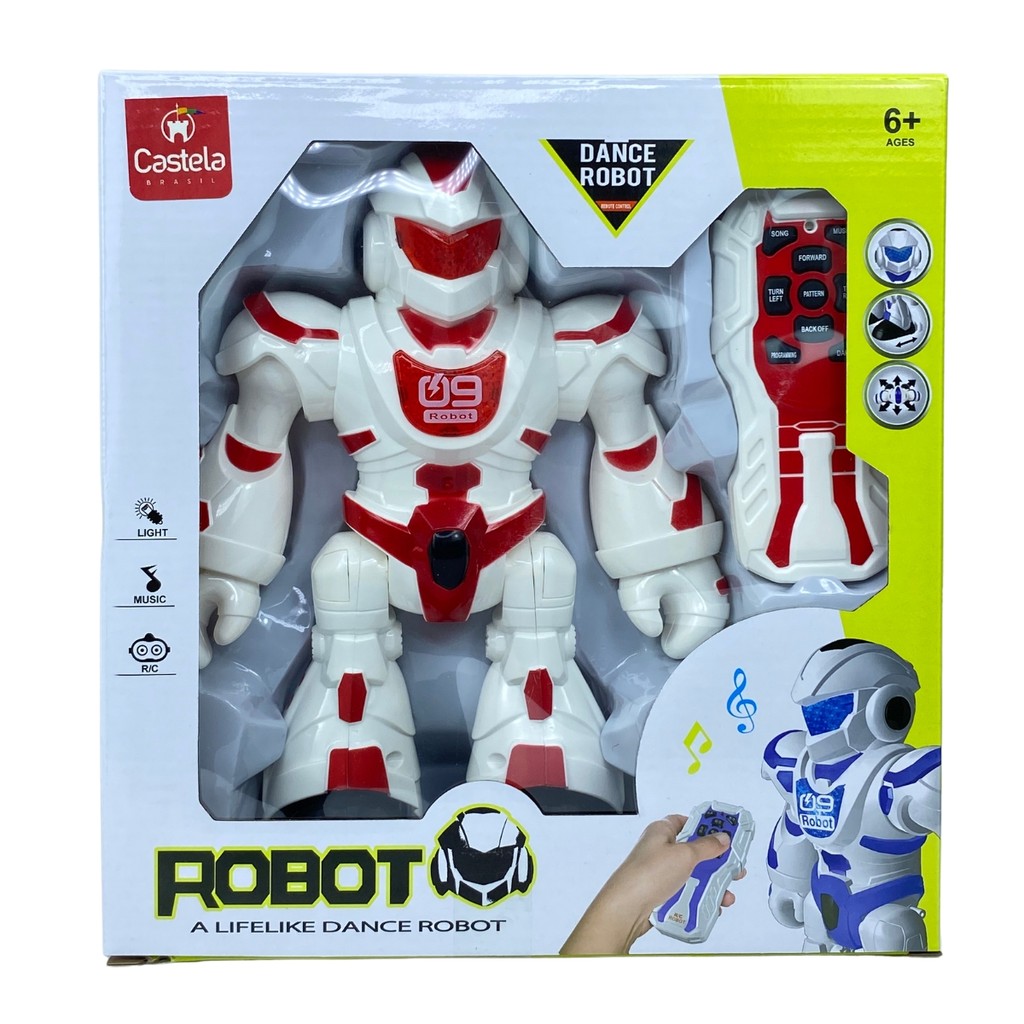DESCRIÇÃO DO PRODUTO: O Robô Brinquedo Infravermelho da Castela é a diversão garantida para crianças que adoram tecnologia e interação! Este robô incrível não só se movimenta, como também dança, gira e emite sons e luzes coloridas, proporcionando uma experiência cheia de energia e diversão. - Movimento e dança: O robô se move para frente, para trás e pode realizar movimentos de dança que encantam. - Tecnologia de infravermelho: Controle remoto para fácil interação e controle dos movimentos do robô. - Sons e luzes: Emite sons divertidos e luzes coloridas, tornando as brincadeiras ainda mais dinâmicas e interessantes. Adquira o seu Robô Castela e leve para casa um brinquedo tecnológico que vai fazer a diversão dos pequenos (e até dos grandes também)! CARACTERÍSTICAS TÉCNICAS: Conteúdo da Embalagem: 1 Robô Brinquedo Infravermelho Dança Gira Se Movimenta C/ Sons & Luz Vermelho - Castela Dimensões Aproximadas do Produto: 23cm Dimensões Aproximadas da Embalagem: 12 cm x 27 cm x 28 cm (Altura x Largura x Comprimento/Profundidade) Material/Composição: Plástico Idade Mínima Recomendada: A partir de 6 anos Participantes: A partir de 1 pessoa Alimentação: Requer 3 Pilhas AA1,5v (Não Incluídas) Marca: Castela Referência: CBS0390A Outras informações: As cores podem variar entre as imagens mostradas acima e o produto. Imagens meramente ilustrativas. Aviso: As informações e imagens divulgadas são de total responsabilidade do fabricante/fornecedor. Produto lacrado e disponível a pronta entrega para todo Brasil! APROVADO PELO INMETRO
