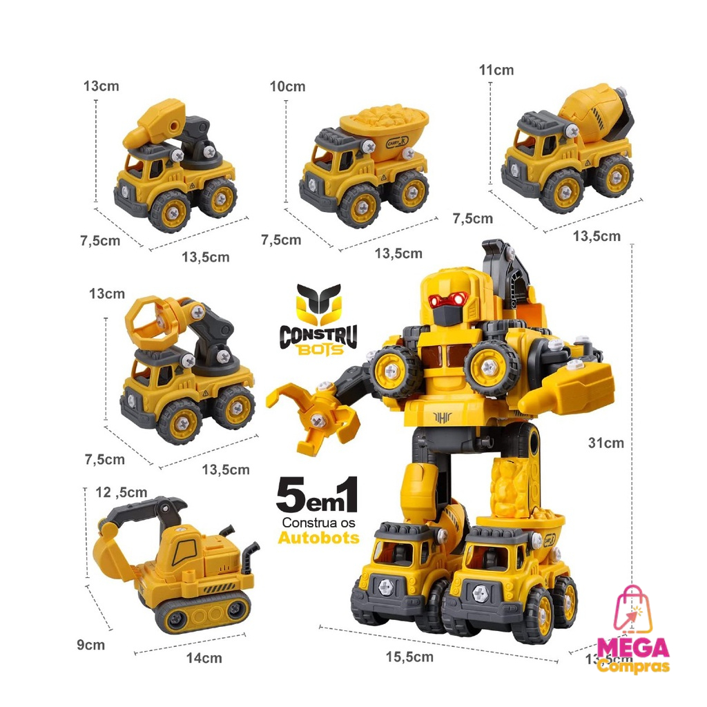 Robô Carrinho Brinquedo 5 Em 1 Construbots Monta E Desmonta Educativo Infantil Ferramentas Criativas