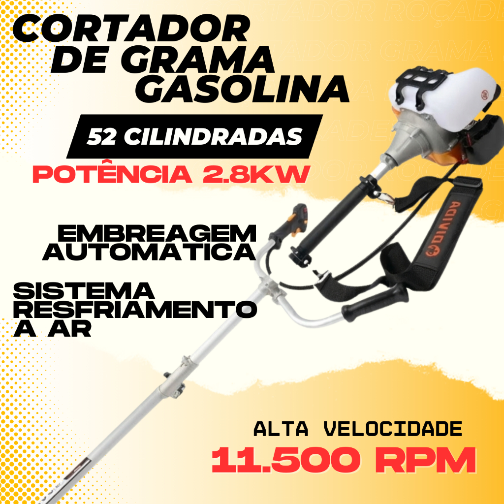 | Roçadeira Aparador Cortador de Grama a Gasolina 52cc 3hp Multifunci... este produto | R$ 504,99 | 44% | 4.9/5 | 24 |