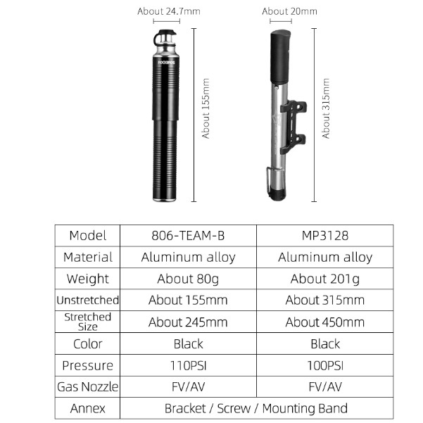 Dicas de dicas: bombas diferentes têm acessórios diferentes!!! Detalhes do Produto: Marca: ROCKBROS Material da liga de alumínio: Liga de alumínio Ajuste de Estrada: Bicicleta de Estrada, Bicicleta MTB Material do Material: tubo externo interno feito por liga de alumínio Cor preta, tira Tipo de bomba de bicicleta: Tipo: Acessórios de bomba de bicicleta de bicicleta Ajuste: MTB, MBX, inflador de bicicleta de estrada Válvula Presta Para: Schrader, Válvula Presta Design de design de fácil bloqueio: design fácil bloqueado Características do produto: 1. Material leve 2. Mini portátil 3. Tubo inflável embutido 4. Av / FV 5. Bomba de alta pressão 100PSI 6. Alça dobrável ergonômica