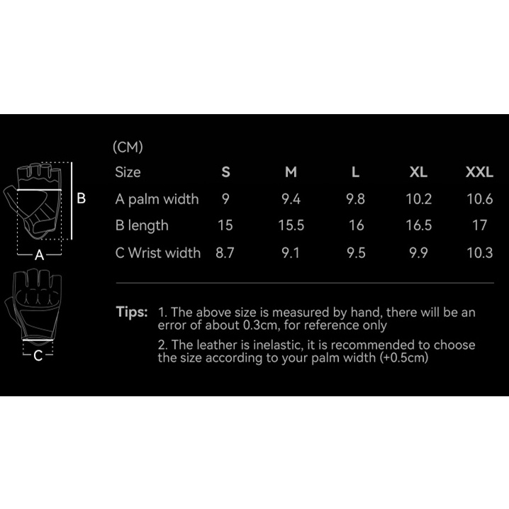 Marca:ROCKBROS Nome; Luvas de Couro De Dedo Curto Motocicleta Numeração:16220006 Material: Couro Artificial PU de alta qualidade + Protetor de Gel Tamanho do produto: S, M, L, XL, XXL Peso: cerca de 90 g (1 par) Vantagem: Anti queda, antiderrapante, respirável, pasta macia Seja aplicável: Ciclismo diário de motocicletas e bicicletas Características: 1.Protetor de Gel Protetor de Gel Gel de Gel 2.Superfície de couro antiderrapante antiderrapante 3.À prova de choque 4.Respirável 5.Conforto confortável