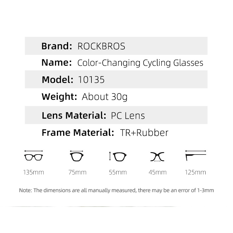 Característica: Mudança de cor em todos os climas, pilotagem, condução, desgaste à beira-mar As lentes PC têm forte resistência ao impacto e propriedades leves. <unk>TR-90 Frame】 TR-90 é um tipo de material de polímero com memória. É o material de quadro ultraleve mais popular do mundo. Possui as características de super tenacidade, resistência ao impacto e resistência à abrasão, e baixo coeficiente de atrito. Pode efetivamente impedir que o quadro quebre durante o movimento., Danos aos olhos e rosto causados pelo atrito. <unk>UV Cut】nossos Óculos de Sol Esportivos feitos de Lente de Proteção 100% UV 400, que é efetivamente filtrar e bloquear os brilhos para proteger seus olhos contra danos UV, bloqueia raios UVA e UVB 100% nocivos. <unk>CONFORTÁVEL E LEVE】: A almofada de nariz antiderrapante e o templo de silicone tornam os óculos de sol mais confortáveis na ponte do nariz e acima das orelhas. Apenas peso 29g, ótimo de usar por longos períodos de tempo. <unk>CARACTERÍSTICAS】: Lente PC + estrutura TR tornam este óculos de sol mais durável, a lente também é fácil de limpar após ficar suja. O orifício de ar nos templos reduz a resistência do vento ao ciclismo, faz você ciclismo sem carga. Lentes fotocromáticas A lente mudará com a intensidade da luz ultravioleta, a luz UV mais forte, a lente escurecedora. Depois de entrar no interior, a lente retornará ao status transparente. Lentes polarizadas O efeito especial da lente polarizada é eliminar e filtrar efetivamente a luz espalhada no feixe. A luz pode ser injetada na imagem visual do olho no eixo de transmissão da pista certa, para que o campo visual fique claro e natural. Assim como o princípio das cortinas, a luz é ajustada à mesma direção e entra na sala, o que naturalmente faz com que a cena pareça macia e não deslumbrante.