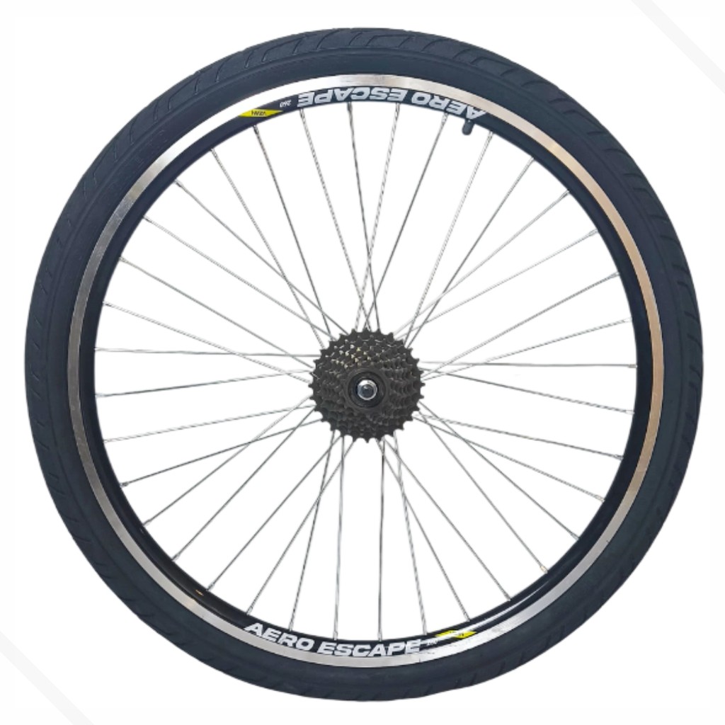 Roda Completa 26x1.9 Raio Grosso/Cubo Aço Aero Vzan C/ Pneus Praieiro e Camara Kenda + Catraca