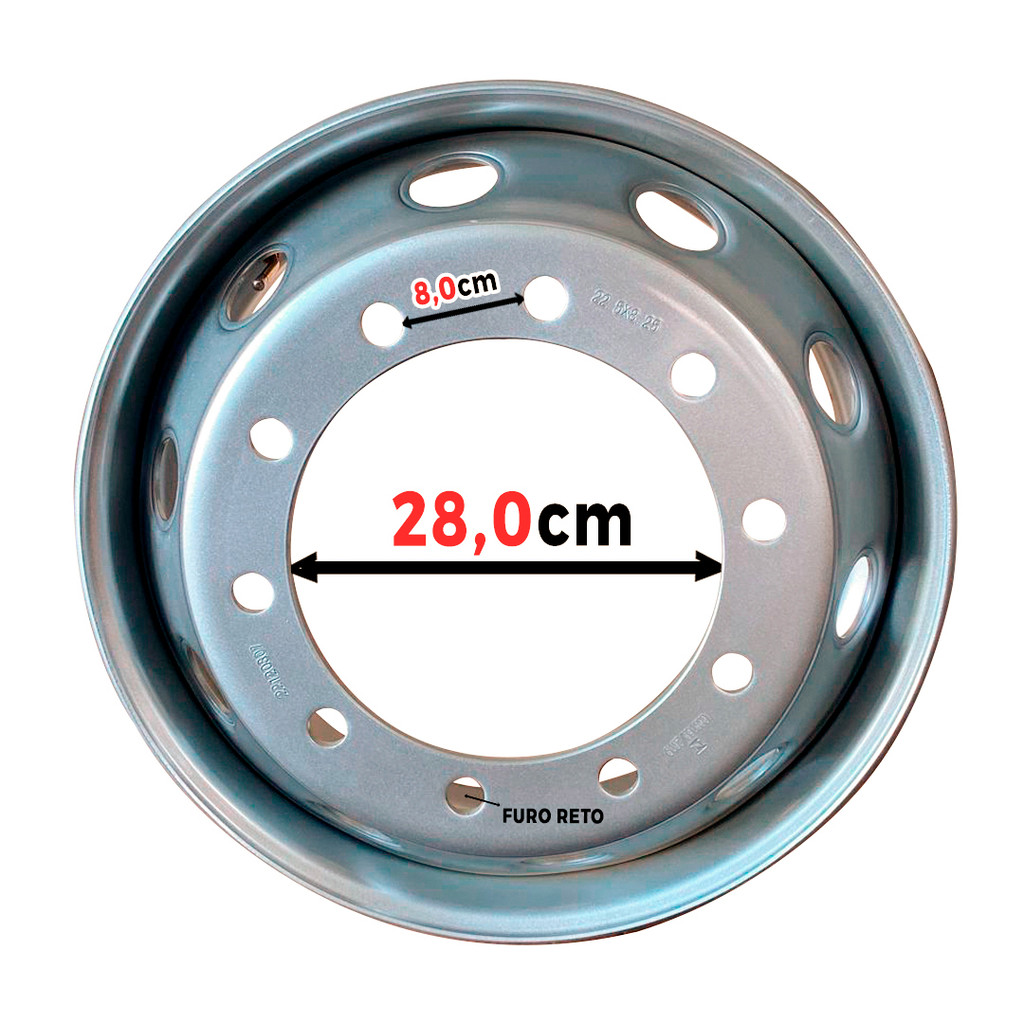 Roda De Aço Disco 275/80 R22,5 10 Furos ( 22.5 X 7.50 ) Xbri Sobre a marca: A XBRI é uma marca do grupo Sunset que decidiu introduzir produtos de marca própria desenvolvidos por uma equipe de engenheiros da empresa, sendo produzidos em fábricas de primeira linha no Vietnã, Malásia, Tailândia e China. Durante o processo de fabricação são efetuados controles de qualidade rigorosos e os pneus são projetados pensando em aspectos como nosso clima, estradas e rodovias para os segmentos de veículos comerciais leves, SUV, agrícola, industrial e de carga. Sobre a Roda: - Marca: XBRI - Modelo: Roda de Caminhão 10 Furos - Medida: 275/80 R22,5 - Aro 22,5 - Quantidade de furos: 10 - Diâmetro do furo central: 281 mm - Tipo de Furo: Reto - Garantia: 5 anos contra defeitos de fabrica Aplicação: - 285/60R22.5 - 295/60R22.5 - 255/70R22.5 - 275/70R22.5 - 305/70R22.5 - 265/75R22.5 - 295/75R22.5 - 305/75R22.5 - 255/80R22.5 - 295/80R22.5 - 305/85R22.5 - 11R22.5 - 12R22.5 Observação: - Imagem Meramente ilustrativa - Confira sempre a medida da roda utilizada no veículo desejado, antes de realizar a compra.
