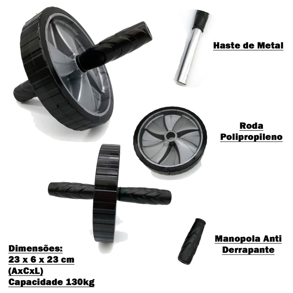 Roda de exercício é ideal para exercícios abdominais, o produto ajudar a define e esculpir o abdômen, toda região do core, costas, ombro e região lombar. Fácil de usar e leve para transportar para onde você for. Composição:Polipropileno. Diâmetro: 18 cm Peso suportado: até 130 Kg Ideal para fortalecimento do abdômen Parte externa texturizada Cor: COR ALEATÓRIA DISPONÍVEL EM ESTOQUE. Modo de usar: Possui pegada anatômica e rodas duplas, garantindo segurança e estabilidade. Direcionar a roda para frente e para trás, nesse processo os músculos principalmente abdominais se contraem se fortalecendo.A roda para exercícios ideal para o fortalecimento da região abdominal, proporcionando alongamento e fortalecimento muscular. Promove maior consciência corporal, desenvolvendo coordenação, resistência, equilíbrio e forca. Auxilia no treinamento da musculatura da região lombar pélvico, quadril, flexão e extensão. - Auxilia no treinamento da musculatura da região lombar pélvico, quadril, flexão e extensão. Possui pegada anatômica e rodas duplas. - Suporta até 130 kg - Material: Plástico e Borracha , apoio em Metal.