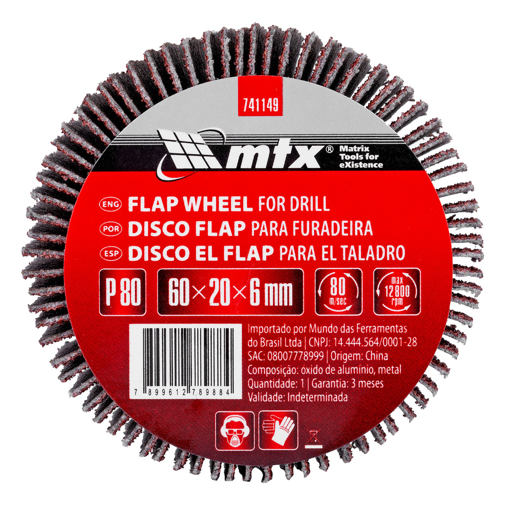 RODA DE LIXA, COM HASTE PARA FURADEIRA, GRAO 80, 60 X 20 X 6MM, 1PC // MTX
