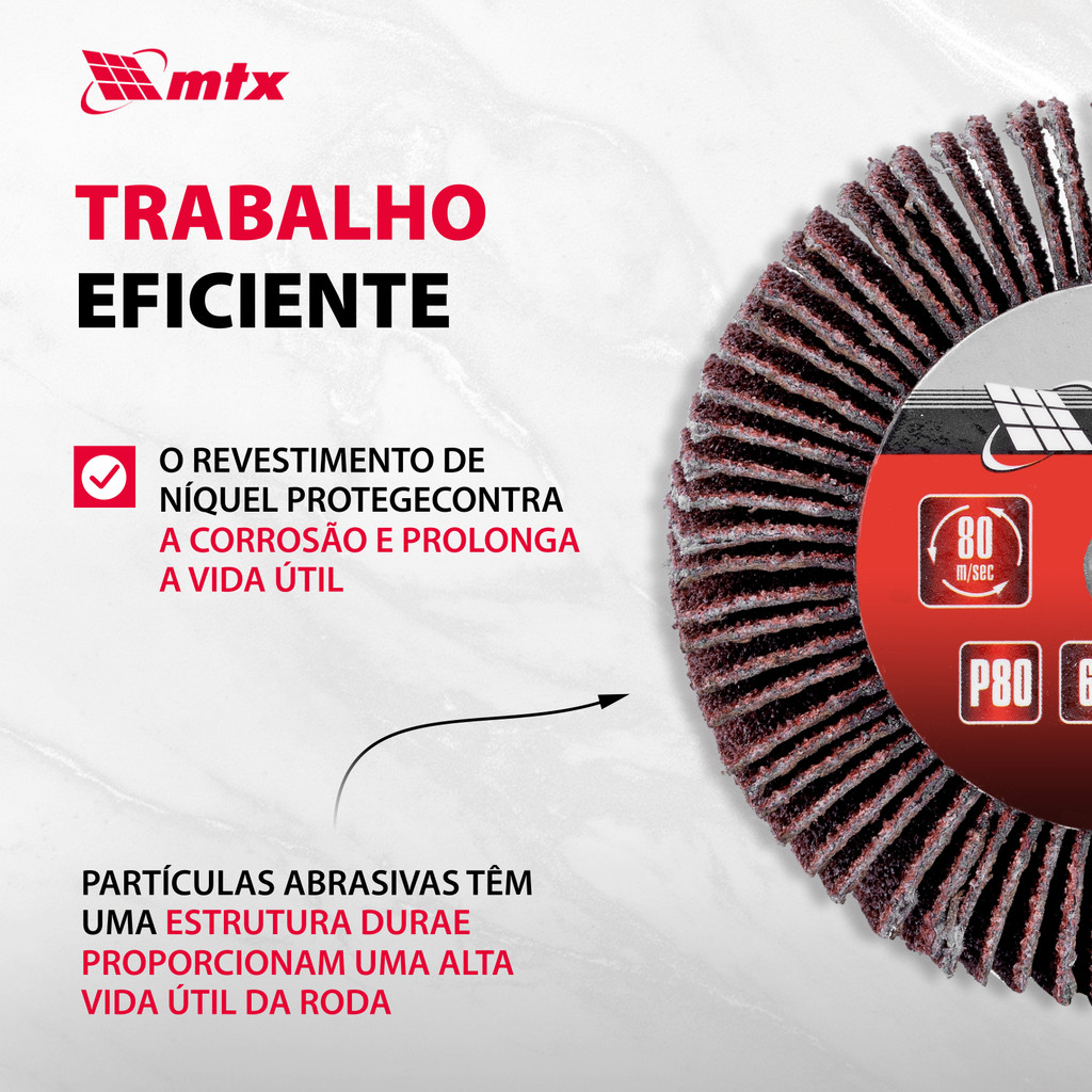 A Roda de Lixa com Haste para Furadeira MTX 741249, medindo 60 x 30 x 6 mm e com granulometria P 80, é uma ferramenta versátil projetada para ser usada em Jogo com furadeiras e retificadoras retas que possuam um diâmetro de encaixe de 6 mm e operem a uma velocidade máxima de rotação de 8000 rpm. Esta ferramenta é ideal para a retificação radial de superfícies internas e externas, oferecendo uma solução eficaz para o processamento intermediário de madeira e metal. Seja removendo rebarbas, camadas de tinta, ferrugem ou verniz, limpando soldas ou preparando superfícies para um acabamento final, a Rodízio de lixa com granulometria P 80 é uma escolha excelente. Vantagens: Facilidade de Uso: Esta Rodízio de lixa é excepcionalmente ágil, permitindo a retificação de superfícies em relevo e o trabalho em locais estreitos ou de difícil acesso. Sua flexibilidade garante que possa ser utilizada em uma ampla gama de aplicações, tornando-a uma ferramenta indispensável para profissionais e entusiastas do faça-você-mesmo. Partículas Abrasivas de Eletrocorindo: As partículas abrasivas em forma pontiaguda, feitas de eletrocorindo, garantem que a Rodízio mantenha suas propriedades de trabalho por um longo período. O eletrocorindo é conhecido por sua alta dureza e capacidade de corte, o que significa que a Rodízio de lixa pode enfrentar os trabalhos mais exigentes com eficácia sustentada. Ligante de Resina de Baquelite: A durabilidade é um fator chave para qualquer ferramenta, e esta Rodízio de lixa não é exceção. A ligação com resina de baquelite assegura que a ferramenta seja resistente ao desgaste, garantindo uma longevidade notável mesmo sob uso intensivo. Haste de Aço com Revestimento de Níquel: A haste de aço da Rodízio de lixa é projetada para resistir a cargas dinâmicas, garantindo que a ferramenta possa suportar o rigor de trabalhos pesados. O revestimento de níquel protege a haste contra a corrosão, prolongando ainda mais a vida útil da ferramenta. A Rodízio de Lixa com Haste para Furadeira MTX 741249 com granulometria P 80 éuma adição valiosa para qualquer kit de ferramentas, proporcionando uma solução eficiente e durável para o processamento de madeira e metal. Seu design inovador e materiais de alta qualidade garantem um desempenho excepcional em uma variedade de aplicações, tornando-a uma escolha confiável para preparar superfícies para o acabamento final.