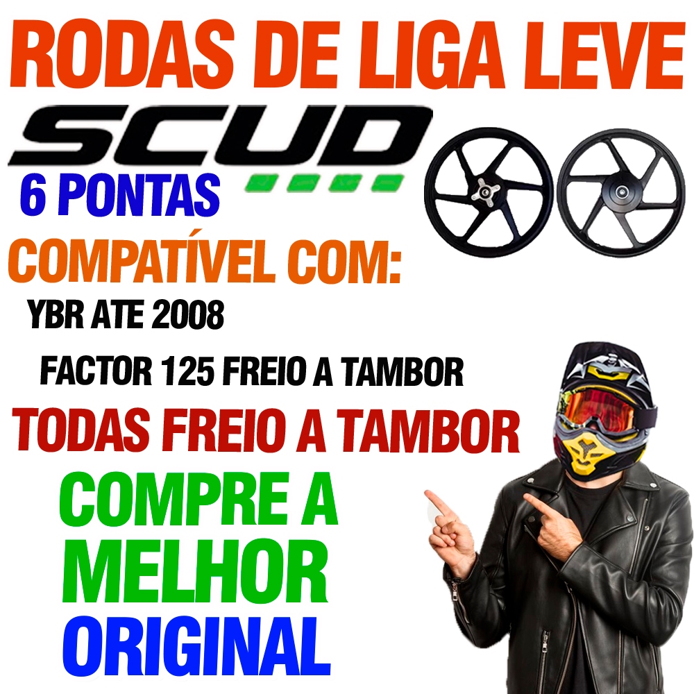 Detalhes do Produto: - A Scud é marca que esta presente no mercado desde o ano de 2008, e vem se destacando mais e mais no ramo de moto peças por impor empenho e dedicação na fabricação de seus produtos, desenvolvendo componentes com os mesmos atributos das montadoras e levando ao consumidor final a qualidade, durabilidade e eficiência. - Rodas injetadas em alumínio de alta resistência. Esse processo de injeção confere ao produto uma perfeita distribuição de matéria prima, evitando a formação de bolhas internas e eventuais pontos de fadiga. - Excelente acabamento, com tratamento de superfície contra imperfeições, o que evita rasgos e furos na câmara de ar. - AS RODA SCUD vem pronta para montagem, não sendo necessária nenhuma adaptação na sua motocicleta. Especificação do Produto: - Cor: Preto - Marca: Scud Aplicação: - Yamaha YBR 125