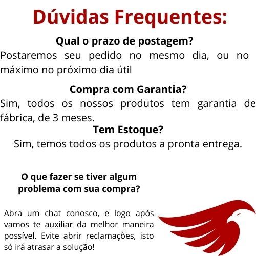 INFORMAÇÕES DO PRODUTO A FABRECK fornece para os principais atacados, concessionárias, distribuidores e lojistas de todo o Brasil no segmento de moto peças, se destacando pela qualidade e pela tecnologia de ponta utilizada na produção de seus produtos. Ela está no mercado de moto peças há mais de 15 anos e já se consolidou como a principal fabricante de rodas esportivas, aros, cubos, guidões, discos e pastilhas de freios do país. Aplicação: - SEGUE O NOME DO ANUNCIO; ***O PRODUTO ENVIADO DEPENDERÁ DO QUE VOCÊ SELECIONAR NA HORA DA COMPRA*** ***ATENTE SE AO MODELO E ANO DA SUA MOTO, O PRODUTO FOI FEITO PARA ENCAIXAR PERFEITAMENTE NA MOTO DO NOME DO ANUNCIO*** Atenção: O PRAZO DE ENTREGA INFORMADO NO ANÚNCIO É DADO AUTOMATICAMENTE PELA SHOPEE, NÓS VENDEDORES NÃO PODEMOS ALTERÁ-LO! A instalação deve ser realizada por um profissional especializado. A Loja não se responsabiliza por montagens errôneas ou defeitos causadas por mal uso do produto. Observação: -A FOTO É MERAMENTE ILUSTRATIVA, O PRODUTO SERÁ ENVIADO DE ACORDO COM O NOME DO ANUNCIO E NÃO COM A FOTO!!! -Pode haver diferença de tonalidade entre a imagem e o produto real por conta do tratamento da foto e a calibração de cores da tela do seu monitor ou aparelho. ;)