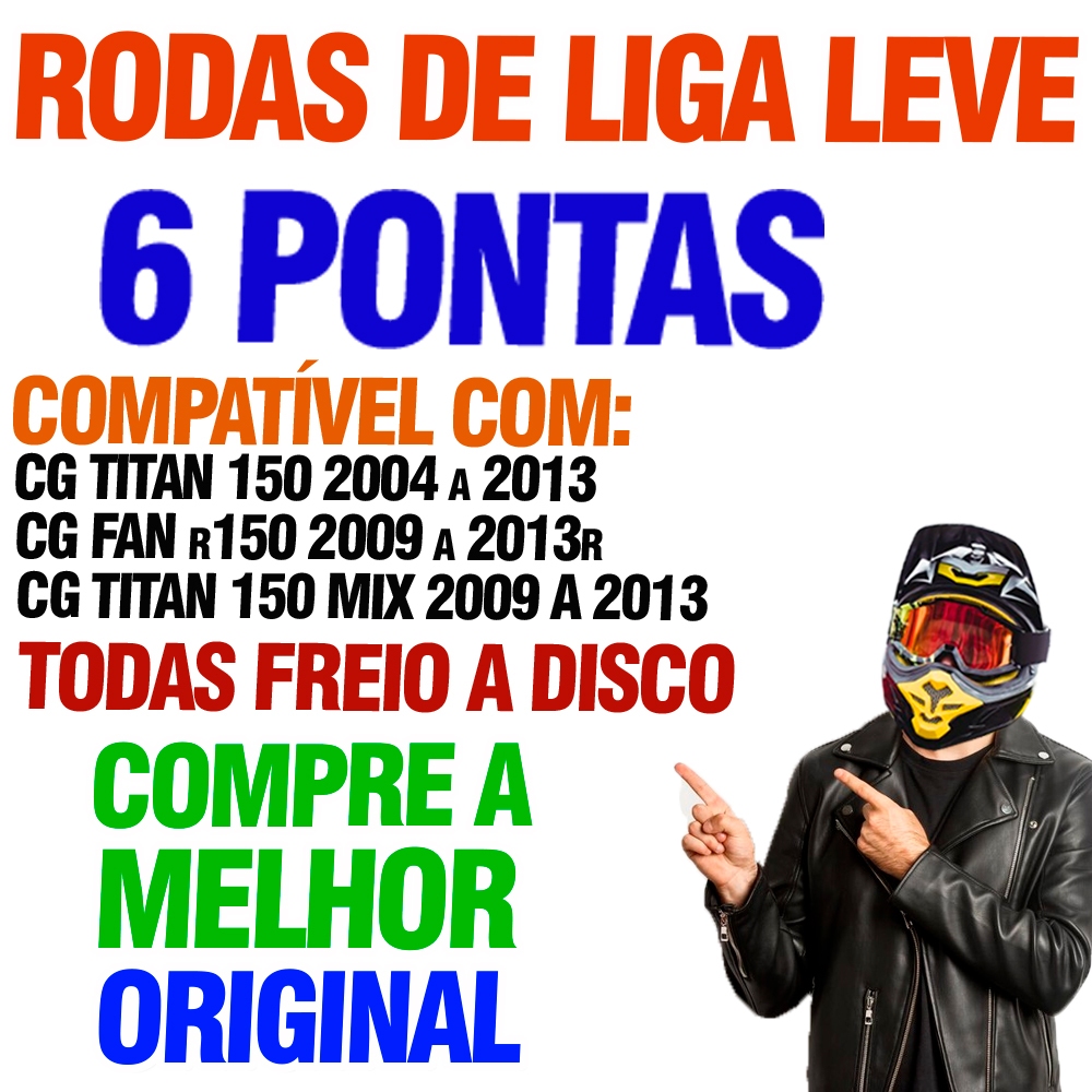 | Rodão Liga Leve Cg Titan Fan 150 2004 a 2013 Jante 6 Palitos Freio ... este produto | R$ 892,00 | — | 4.0/5 | — |