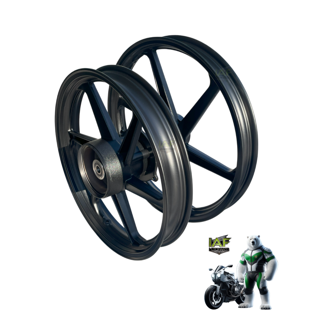 COMPATIBILIDADE: - NXR BROS 150 OHC (2003 ATÉ 2005) - NXR BROS 150 ESD (2003 ATÉ 2014) - NXR BROS 160 ESD (2015 ATÉ 2016) TIPO DE FREIO: DISCO NA RODA DIANTEIRA, LONA/PATIM NA RODA TRASEIRA RODA DIANTEIRA: ARO 19" RODA TRASEIRA: ARO 17" COR: PRETO LIGA: ALUMÍNIO COM ROLAMENTO: SIM COM RETENTOR DE RODA: SIM CANSADO DOS RAIOS ENFERRUJADOS E COMPLICADOS DE LIMPAR? PRODUTO DE ALTA DURABILIDADE COM ACABAMENTO PREMIUM! ELEVE O VISUAL E O ESTILO DA SUA MOTO COM AS RODAS DE LIGA LEVE. Este produto é de fácil instalação, não exige que mude a estrutura de sua moto, pois foi confeccionado seguindo as especificações do produto original, para encaixe e funcionamento perfeito.Porém para evitar problemas recomendamos que a instalação seja feita por um profissional da área. Nós NÃO nos responsabilizamos pelo mau uso do produto. Esperamos que esta compra possa atender às suas expectativas. Gostaríamos que você avalia-se o produto como uma classificação de CINCO ESTRELAS. Esperamos que retorne em breve! Se você tiver alguma dúvida, temos uma equipe pronta para atender e sanar todas elas.