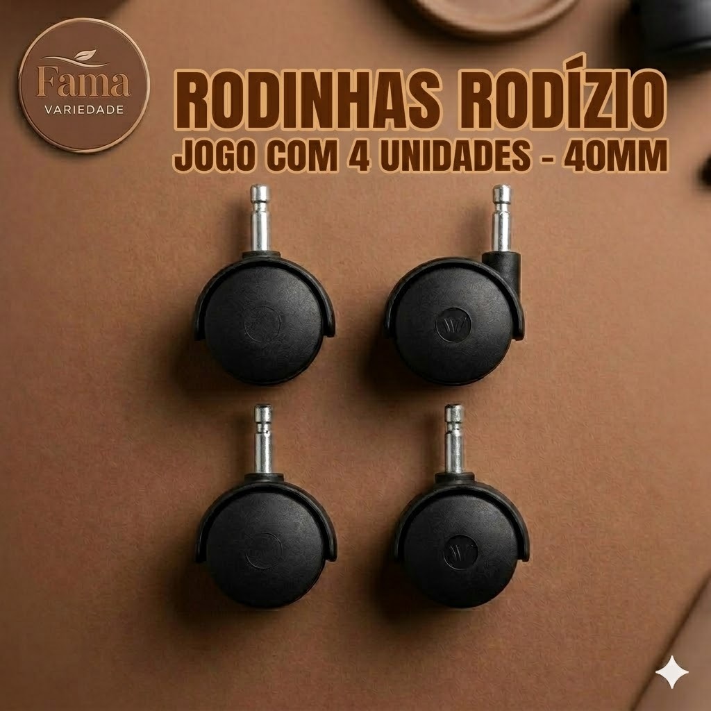 | Rodinhas Rodízio Giratórias 40mm Pino 6mm Reforçadas jogo de 4 Unid... este produto | R$ 11,98 | 52% | 4.9/5 | 280 |