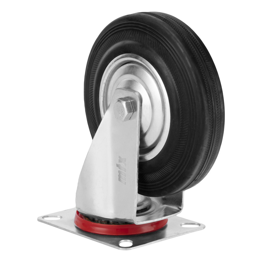 RODIZIO BORRACHA PRETA GIRATORIO SEM FREIO 5POL 125MM SUPORTE PLATAFORMA 100KG 1PC // MTX
