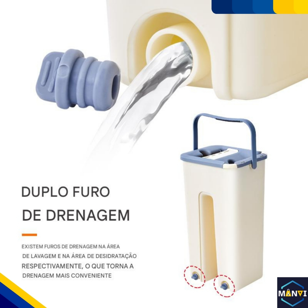 KIT MOP FLAT COM BALDE LAVA E SECA - COR SORTIDA O Kit Mop Flat com Balde Lava e Seca é ideal para quem busca praticidade e eficiência na limpeza diária. Seu sistema com dois compartimentos permite lavar e secar o mop com facilidade, enquanto o refil de microfibra remove sujeiras, poeira e líquidos com alta absorção, deixando o ambiente limpo com menos esforço. DESTAQUES DO PRODUTO * Sistema duplo no balde para lavar e secar o mop com facilidade * Base plana flexível que alcança cantos e áreas difíceis * Refil de microfibra com alta absorção de sujeira e líquidos * Balde com sistema de drenagem que facilita a troca de água * Alça no balde para transporte mais prático * Cabo resistente e leve para maior conforto durante o uso * Ideal para limpeza de diversos tipos de piso ESPECIFICAÇÕES TÉCNICAS * Dimensões do balde: 35 cm altura x 18 cm largura x 15 cm profundidade * Largura de cada compartimento: 9,5 cm * Dimensões do rodo: 112 cm comprimento * Base do rodo: 32 cm x 11 cm * Composição: Inox e Plástico * Capacidade: 5 Litros total * Peso aproximado: 1,1 kg * Conteúdo da embalagem: 01 Rodo Flat Mop, 01 Balde Lava e Seca, 02 Refis de Microfibra FAQ O mop já acompanha refil? Sim, o kit acompanha 2 refis de microfibra. O balde possui sistema para secar o mop? Sim, o balde possui dois compartimentos: um para lavar e outro para secar. O mop serve para quais tipos de piso? Pode ser utilizado em diversos pisos como porcelanato, cerâmica, laminado e outros. O cabo é resistente? Sim, o cabo é produzido em inox e plástico, oferecendo leveza e durabilidade. POR QUE COMPRAR NA MANVI * Atendimento rápido e dedicado * Suporte completo no pré e pós-venda * Loja confiável com envio ágil * Experiência segura de compra MANVI, qualidade e economia é aqui!