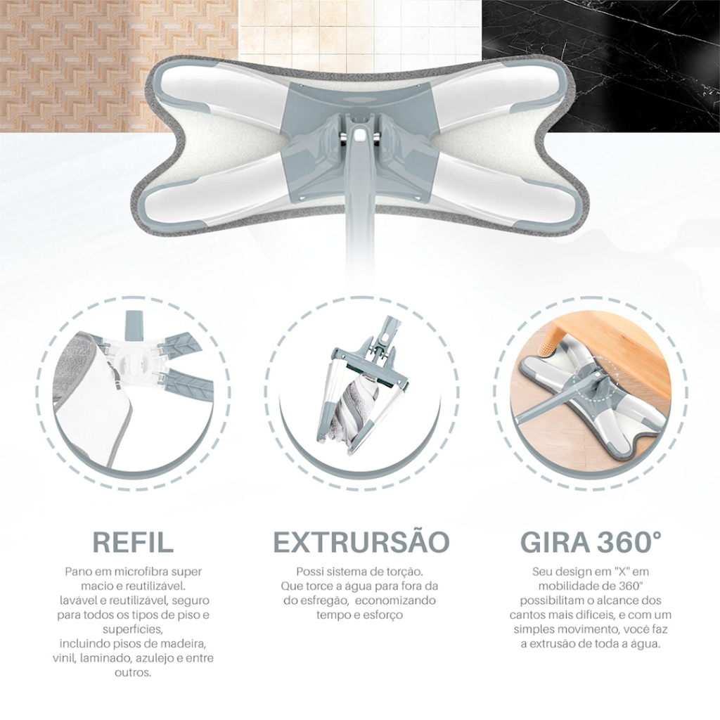 Rodo Mop Extrusão X-mop 360- Rodo Que Torce Pano- Bhz Store