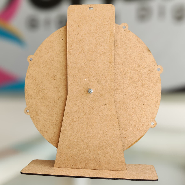 Roleta com 40cm de diâmetro sorteio, brindes e educativa. Varias opções para decorar/personalizar Fabricada em MDF cru de 3mm de espessura. ROLETA: 40cm diâmetro ALTURA: 45cm BASE: 28cm x 11cm *ENVIO IMEDIATO * não acompanha catraca