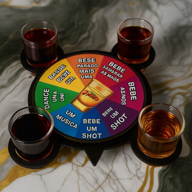 | Roleta Roda de Shot com 4 Copinhos Cachaça Acrílico 60ml Mesa Bebid... este produto | R$ 20,30 | 32% | 4.9/5 | 38 |
