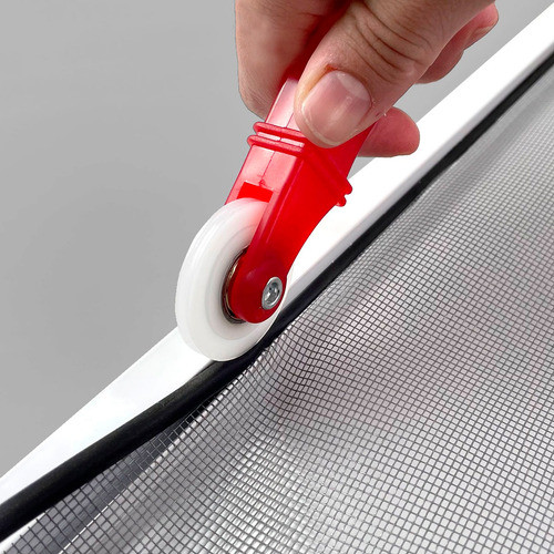 Rolete Aplicador Tela Mosqueteira Duplo Perfil Alumínio Vermelho