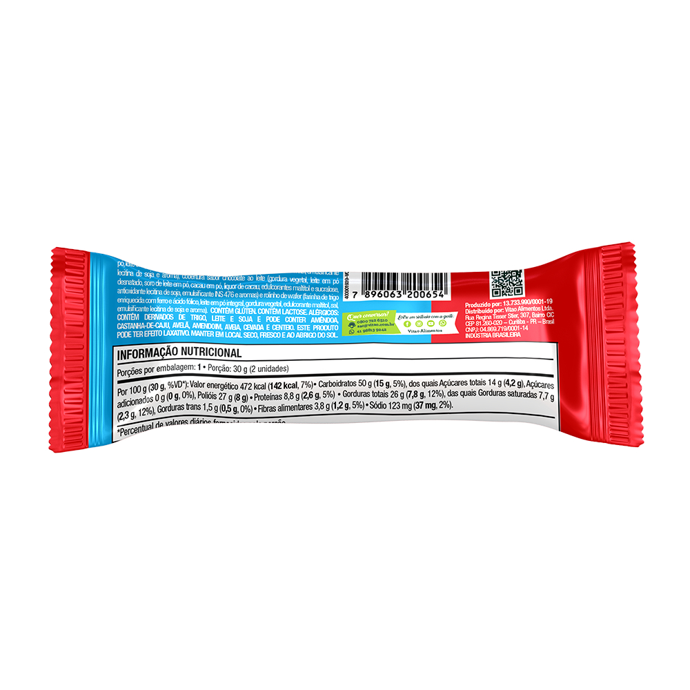 O Viccio ao Leite é uma deliciosa sobremesa composta por wafer crocante, recheio sabor chocolate ao leite e cobertura de chocolate ao leite, sem adição de açúcares. Satisfaça sua vontade de doce sem culpa e desfrute de um sabor incrível uma opção mais saudável, sem comprometer sua dieta. INGREDIENTES: Recheio sabor chocolate ao leite (gordura vegetal, cacau em pó, soro de leite em pó, leite em pó desnatado, leite em pó integral, liquor de cacau, edulcorante maltitol, emulsificante lecitina de soja e aroma), cobertura sabor chocolate ao leite (gordura vegetal, leite em pó desnatado, soro de leite em pó, cacau em pó, liquor de cacau, edulcorantes maltitol e sucralose, antioxidante lecitina de soja, emulsificante INS 476 e aromas) e rolinho de wafer (farinha de trigo enriquecida com ferro e ácido fólico, leite em pó integral, gordura vegetal, edulcorante maltitol, sal, emulsificante lecitina de soja e aroma). ALÉRGICOS: CONTÉM DERIVADOS DE TRIGO, LEITE E SOJA E PODE CONTER AMÊNDOA, CASTANHA-DE-CAJU, AVELÃ, AMENDOIM, AVEIA, CEVADA E CENTEIO. CONTÉM GLÚTEN. CONTÉM LACTOSE. ZERO ADIÇÃO DE AÇÚCARES.