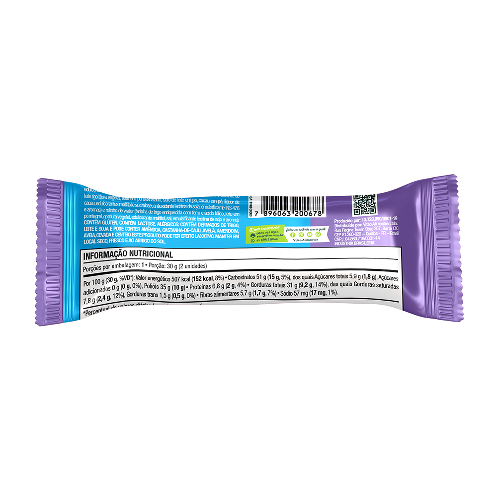 Experimente o Viccio Avelã, uma deliciosa sobremesa com wafer crocante, recheio sabor avelã e cobertura de chocolate ao leite, sem adição de açúcares. Satisfaça sua vontade de doce sem culpa e desfrute de um sabor irresistível, combinando a cremosidade da avelã com o toque suave do chocolate ao leite, em uma experiência única e deliciosa. INGREDIENTES: Recheio sabor avelã (gordura vegetal, cacau em pó, liquor de cacau, edulcorante maltitol, emulsificante lecitina de soja e aromas), cobertura sabor chocolate ao leite (gordura vegetal, leite em pó desnatado, soro de leite em pó, cacau em pó, liquor de cacau, edulcorantes maltitol e sucralose, antioxidante lecitina de soja, emulsificante INS 476 e aromas) e rolinho de wafer (farinha de trigo enriquecida com ferro e ácido fólico, leite em pó integral, gordura vegetal, edulcorante maltitol, sal, emulsificante lecitina de soja e aroma). ALÉRGICOS: CONTÉM DERIVADOS DE TRIGO, LEITE E SOJA E PODE CONTER AMÊNDOA, CASTANHA-DE-CAJU, AVELÃ, AMENDOIM, AVEIA, CEVADA E CENTEIO. CONTÉM GLÚTEN. CONTÉM LACTOSE. ZERO ADIÇÃO DE AÇÚCARES.