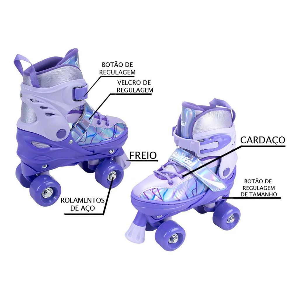 NÃO CONSIDERAR NÚMEROS A MAIS NA HORA DA COMPRA. (ESSA CONTA JÁ FOI FEITA). SIGA A TABELA: PATINS QUAD TABELA: SE A CRIANÇA CALÇAR DE TÊNIS: 28, 29, 30, 31 - COMPRAR DO 28 AO 31 32, 33, 34,35 -COMPRAR DO 32 AO 35 36, 37, 38, 39 -COMPRAR DO 36 AO 39 -MAIS CONFORTO INTERNO -PRODUTO COM SELO INMETRO -PRODUTO PREMIUM -PRODUTO A PRONTA ENTREGA -POSTAGEM NO MESMO DIA -EMBALAGEM SEGURA -MELHOR CUSTO BENEFICIO -Nos preocupamos com a satisfação dos nossos clientes -Nossas qualificações são as melhores do mercado referente a qualidade e atendimento. -Compre Brinquedos somente com selo inmetro (todos nossos brinquedos e patins tem selo inmetro) Ficha Tecnica do produto: - Idade Recomendada: A partir de 3 anos Características: - Super confortável com sistema de ajuste para se adequar ao seu número - Totalmente acolchoada e firme nos pés - Sistema de configuração fácil com 2 travas de segurança - Alta Performance e Desempenho - Sistema de controle de velocidade (Freio Frontal) - Acompanha kit de proteção COMPLETO, cotoveleira, capacete, joelheira e munhequeira - Rodas de 54mm e rolamento de aço - Com certificado do INMETRO
