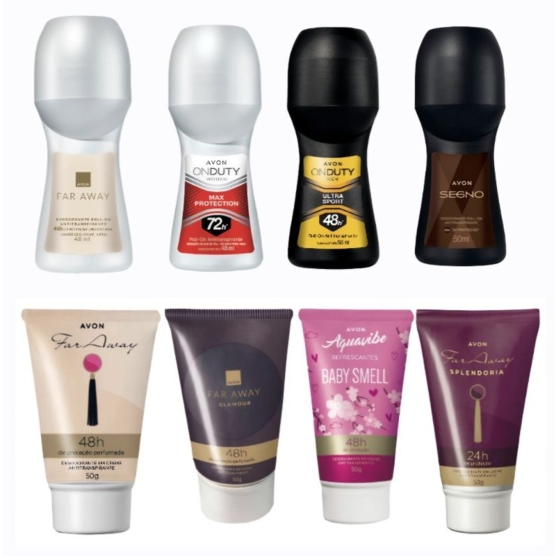 | ROLLON ou EM CREME DESODORANTE AVON unitario ou kit FEM ou MASC este produto | R$ 13,99 | — | 4.9/5 | 19 |