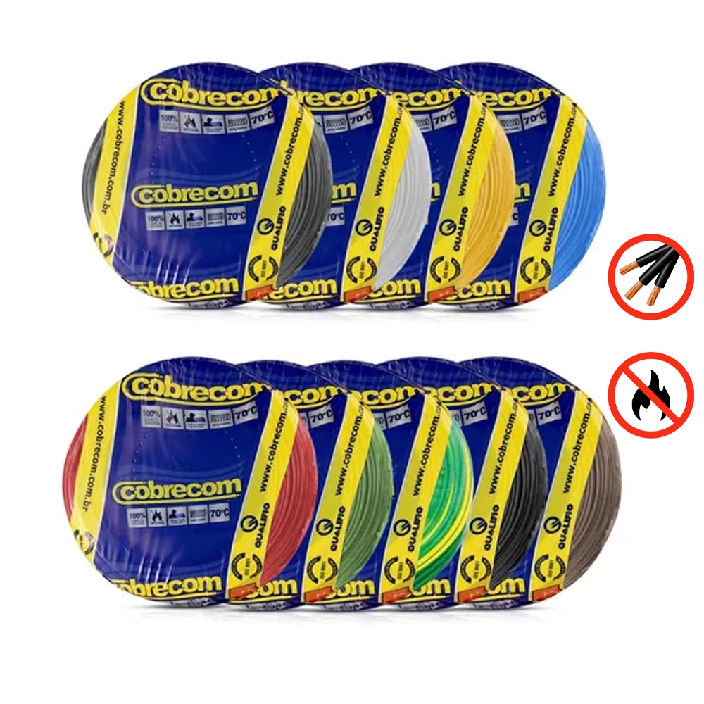 Rolo 100 Metros Fio Cabo Eletrico Flexivel 1,5mm 2,5 mm 4,0mm 6,0mm Cobrecom Selo Inmetro Antichamas