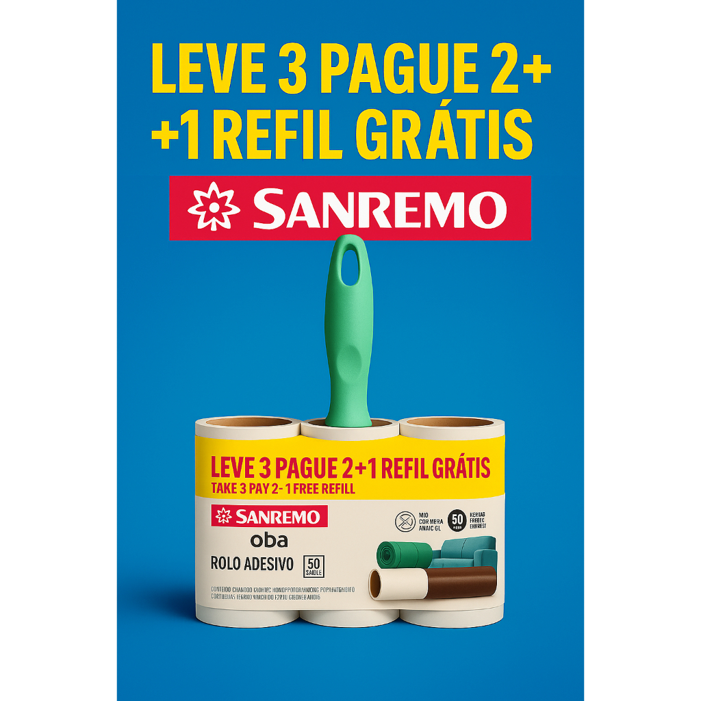 | Rolo adesivo sanremo tira pelos 50 folhas leve 3 pague 2 roupas est... este produto | R$ 32,00 | 20% | 5.0/5 | 18 |