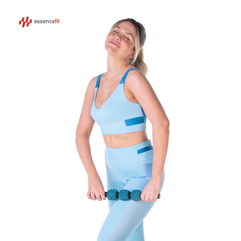 O bastão miofascial, também conhecido como massage stick ou bastão de liberação miofascial, é uma ferramenta portátil de automassagem projetada para liberar a tensão muscular em diversas partes do corpo. Benefícios do Bastão Miofascial da Essencefit Assim como o rolo miofascial, o bastão oferece diversos benefícios para quem o utiliza, especialmente no contexto de atividades como Pilates e Yoga: Alívio da dor e tensão muscular: A pressão aplicada pelo bastão ajuda a quebrar nós musculares e pontos de tensão, aliviando dores e a sensação de rigidez. Melhora da circulação sanguínea: A massagem estimula o fluxo de sangue para os músculos, o que auxilia na recuperação e nutrição dos tecidos. Aumento da flexibilidade e amplitude de movimento: Ao liberar a tensão muscular e fascial, o bastão contribui para um maior alcance dos movimentos durante os exercícios de Pilates e Yoga. Recuperação muscular acelerada: Utilizar o bastão após a prática ajuda a reduzir a dor muscular tardia (DOMS) e a acelerar a recuperação. Fácil de usar e portátil: Seu formato compacto e leve permite que seja facilmente transportado e utilizado em qualquer lugar. Controle da pressão: O usuário tem maior controle sobre a intensidade da massagem, podendo ajustar a pressão conforme a necessidade e sensibilidade de cada área. Acessibilidade a diversas áreas: O bastão é particularmente útil para massagear áreas como panturrilhas, isquiotibiais, quadríceps, braços e pescoço, sendo mais fácil de manusear em algumas dessas regiões do que o rolo. Prevenção de lesões: O uso regular pode ajudar a manter a musculatura mais saudável e flexível, potencialmente reduzindo o risco de lesões. Como Usar o Bastão Miofascial: 1 - Posicione o bastão: Coloque o bastão sobre a área muscular que deseja massagear. 2 - Aplique pressão: Utilize as mãos para pressionar o bastão contra o músculo. Se o seu bastão tiver alças, segure-as para controlar a pressão. 3 - Role o bastão: Deslize o bastão ao longo do comprimento do músculo em movimentos lentos e controlados. Experimente diferentes ângulos e direções. 4 - Concentre-se em áreas de tensão: Ao encontrar um ponto mais sensível ou tenso, diminua a velocidade e aplique uma pressão mais constante por alguns segundos. 5 - Use antes e depois do exercício: Utilize antes para aquecer os músculos e preparar para o movimento, e depois para ajudar na recuperação. O bastão miofascial é uma excelente adição aos seus acessórios de Pilates e Yoga, oferecendo uma maneira eficaz e conveniente de cuidar da sua musculatura e otimizar os benefícios da sua prática.