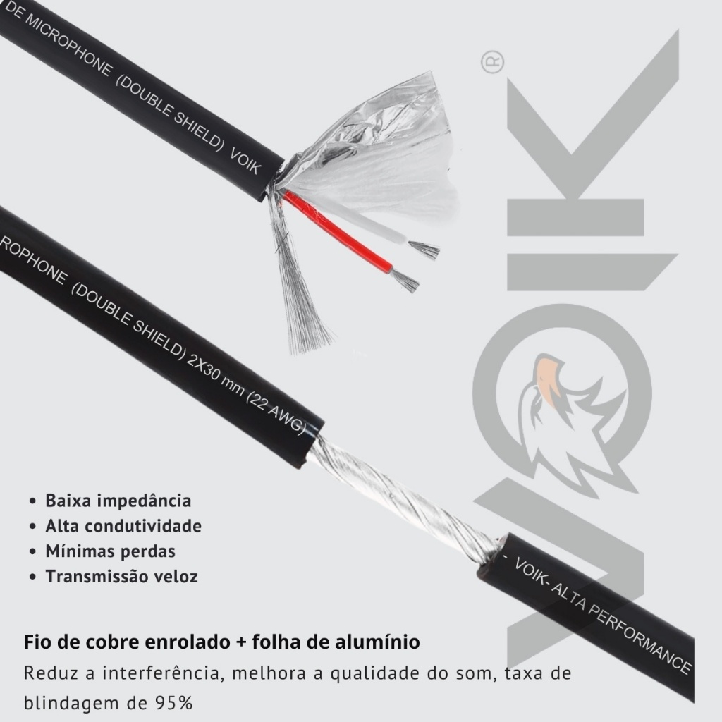 O Rolo de Cabo Para Microfone Voik VCT-70 de 100 metros é a solução ideal para quem busca desempenho profissional com a segurança de um produto confiável e feito para durar. Ele entrega uma transmissão de áudio limpa, estável e balanceada, garantindo aquela sensação de tranquilidade e qualidade que faz toda diferença em gravações, eventos, estúdios ou uso doméstico. Fabricado com cobre eletrolítico SN, possui condutor de 2x0,30 mm² e dupla blindagem composta por malha de cobre estanhado OFHC e fita de poliéster aluminizada, protegendo o sinal contra interferências e mantendo o som sempre cristalino. As veias cobertas com resina e a capa final de PVC emborrachado reforçam ainda mais a resistência, permitindo um uso constante sem perda de eficiência. Com 100 metros de metragem, ele oferece liberdade total para instalações maiores, mantendo a mesma qualidade de ponta a ponta. Seu acabamento em preto transmite sobriedade e profissionalismo, e suas dimensões compactas facilitam o transporte e armazenamento, mesmo com o peso robusto de 4,540 kg que reforça sua construção superior. É um produto que traz excelente custo-benefício, unindo tecnologia, durabilidade e uma performance que realmente faz diferença no resultado final do áudio. Especificações • Marca: Voik • Modelo: VCT-70 • Cor: Preto • Metragem do rolo: 100 Metros • Condutor: 2x0,30 mm² • Estéreo: Balanceado • Fabricado em cobre eletrolítico SN • Veias cobertas com resina • Dupla blindagem (malha de cobre estanhado OFHC + fita de poliéster aluminizada) • Capa final de PV Emborrachado com bitola de 2x0,30mm² (22AWG) • Dimensões do rolo: A: 7 cm x L: 31 cm x C: 31 cm • Peso do rolo: 4,540 kg Aplicação • Microfones, interligações em instrumentos musicais, equipamentos de áudio, instalação eletro Observações • Fabricado em cobre eletrolítico SN • Dupla blindagem (malha de cobre estanhado OFHC + fita de poliéster aluminizada) • Estéreo: Balanceado Itens Inclusos 01 Rolo de Cabo Para Microfone Voik VCT-70 100 Metros Preto Importante Recomendamos que a instalação seja feita por um profissional especializado, pois o mau uso do produto pode causar danos e perda da garantia. A garantia é válida por 3 meses a partir do recebimento do produto, e cobre apenas defeitos de fabricação.