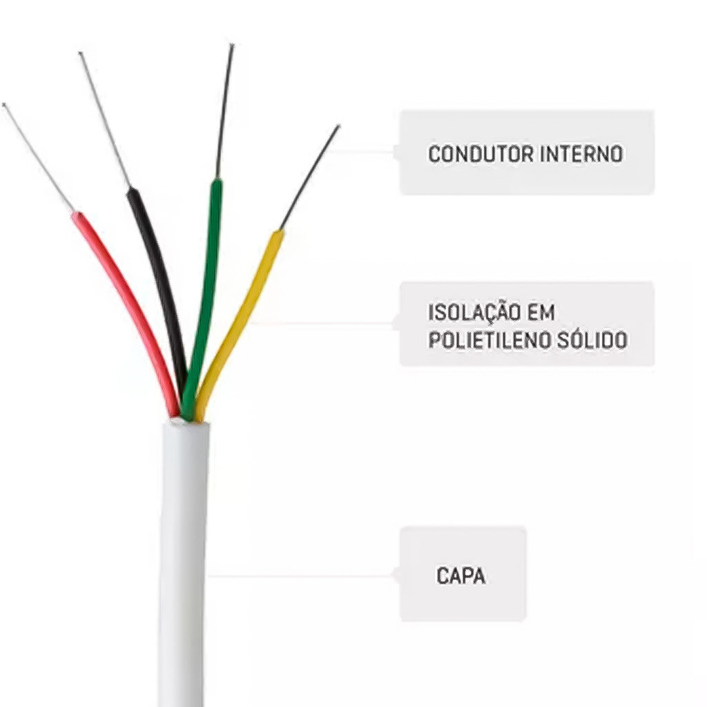 Rolo Cabo Para Instalação De Alarme Branco 0,40mm X 4 Vias 100 Metros Infinity Profissional