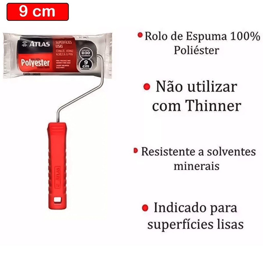 Rolo De Espuma Cinza Durável Para Pintura Base Solvente Agua Com Cabo Vários Tamanhos