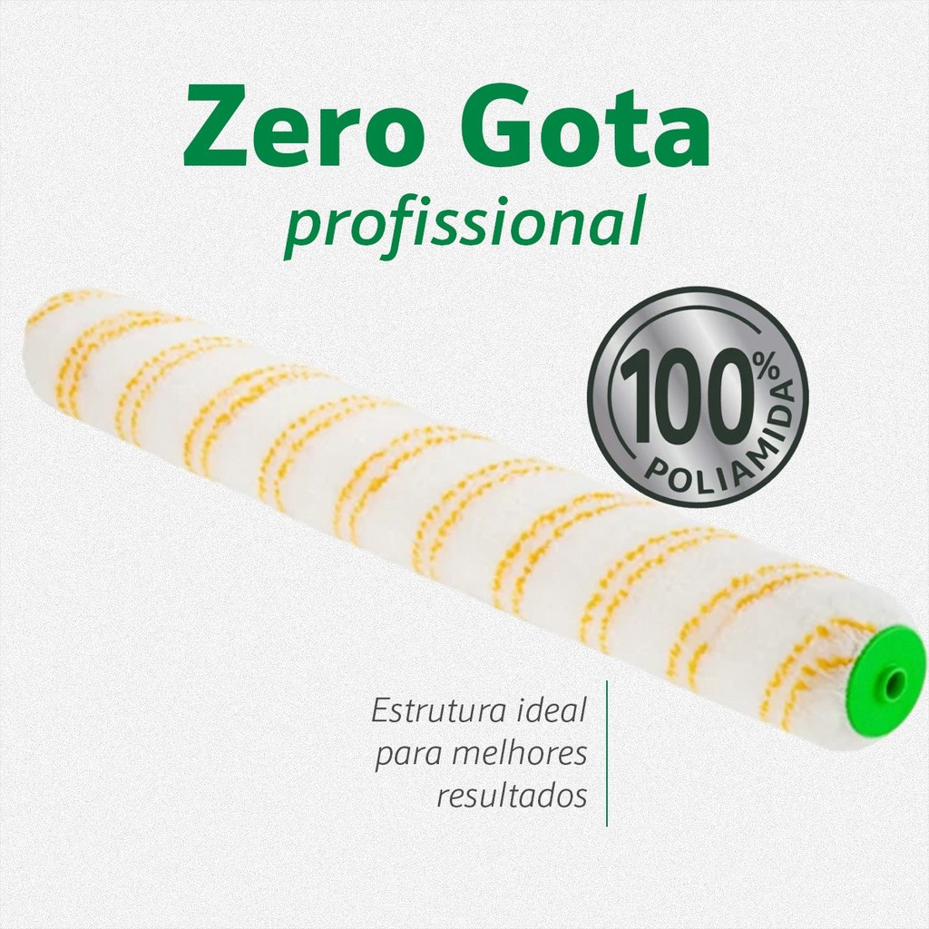 Rolo Zero Gota 46cm - Tinta acrílica Agora com duas listras amarelas. Reduz o respingamento. Acabamento perfeito. ALTURA DA LÃ: 10 mm. USO COM: Epóxi, resinas, esmaltes, verniz, acrílicas e industriais. USO EM: Superfícies lisas e semilisas. Tamanho: Comprimento 46cm Largura 6cm Altura 6cm Condor