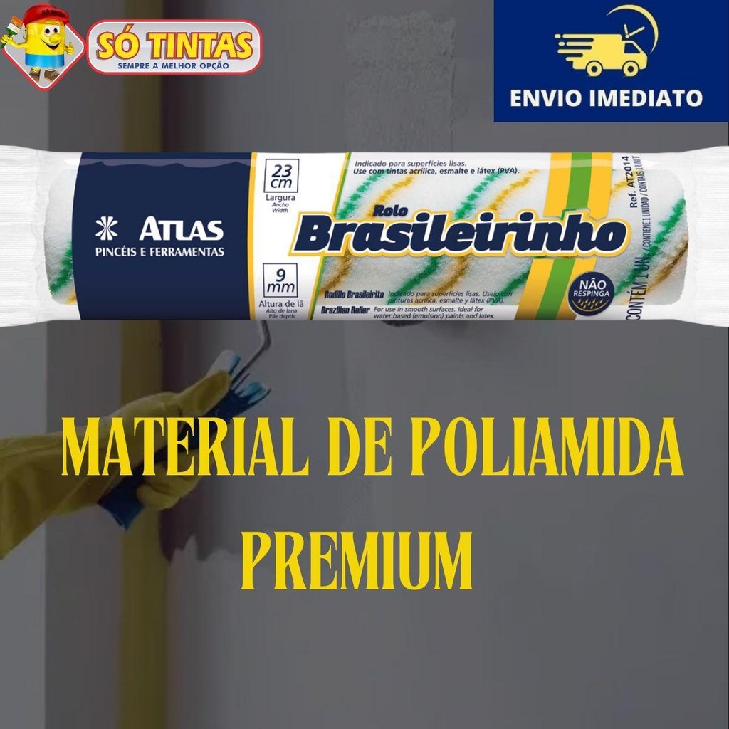 Rolo de Pintura Brasileirinho AT2014 Atlas 23cm Indicado para Tintas Acrílica, Látex e Esmalte.