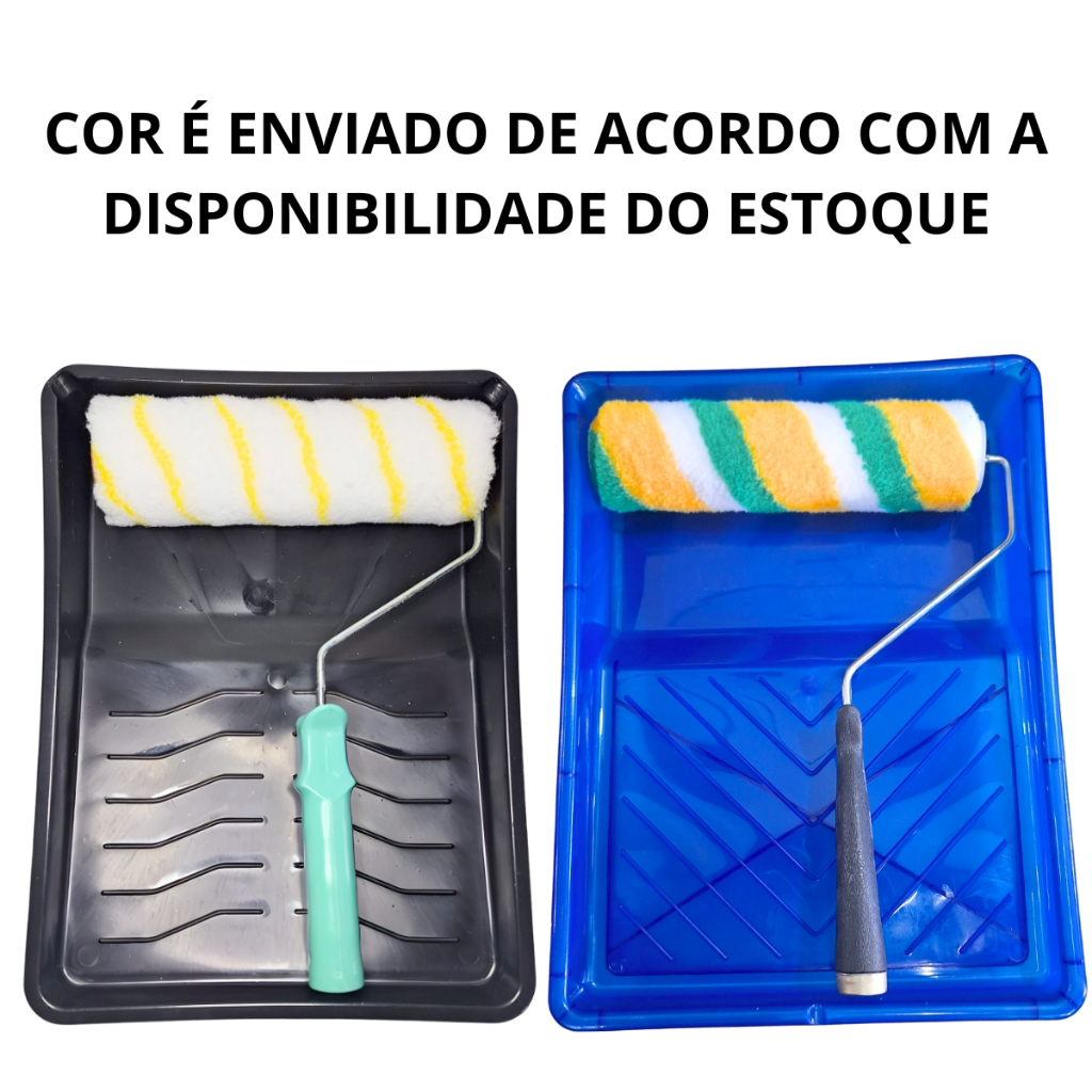 Rolo de Pintura Rolo de Lã 23cm + Suporte de Rolo e Bandeja Grande 37cm Perfeito p trabalhos completo não é possível escolher a cor devido a grande demanda de estoque. Medidas do Kit: Bandeja Comprimento: 37cm Largura: 27cm Rolo de Pintura: 23cm Todos os produtos são analisados antes do envio para garantir a melhor qualidade