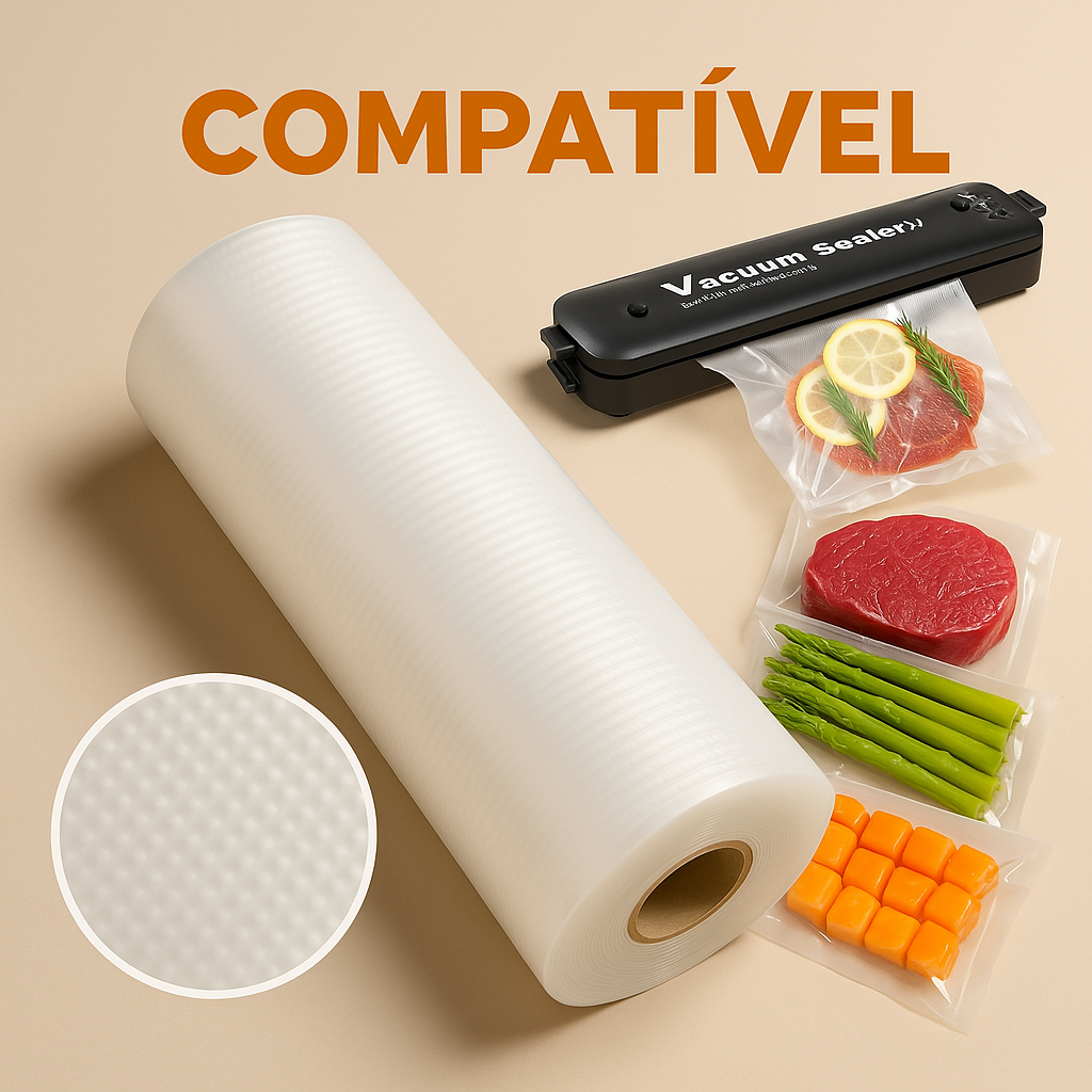 Rolo Gofrado Embalagem a Vácuo Para Seladora Doméstica Freezer Alimentos Texturizado 5 M Bobina