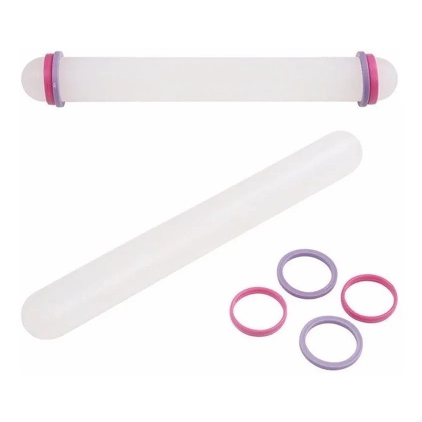 Rolo Maciço de Abrir Massa Par de Anéis Niveladores Biscuit Pasta Americana