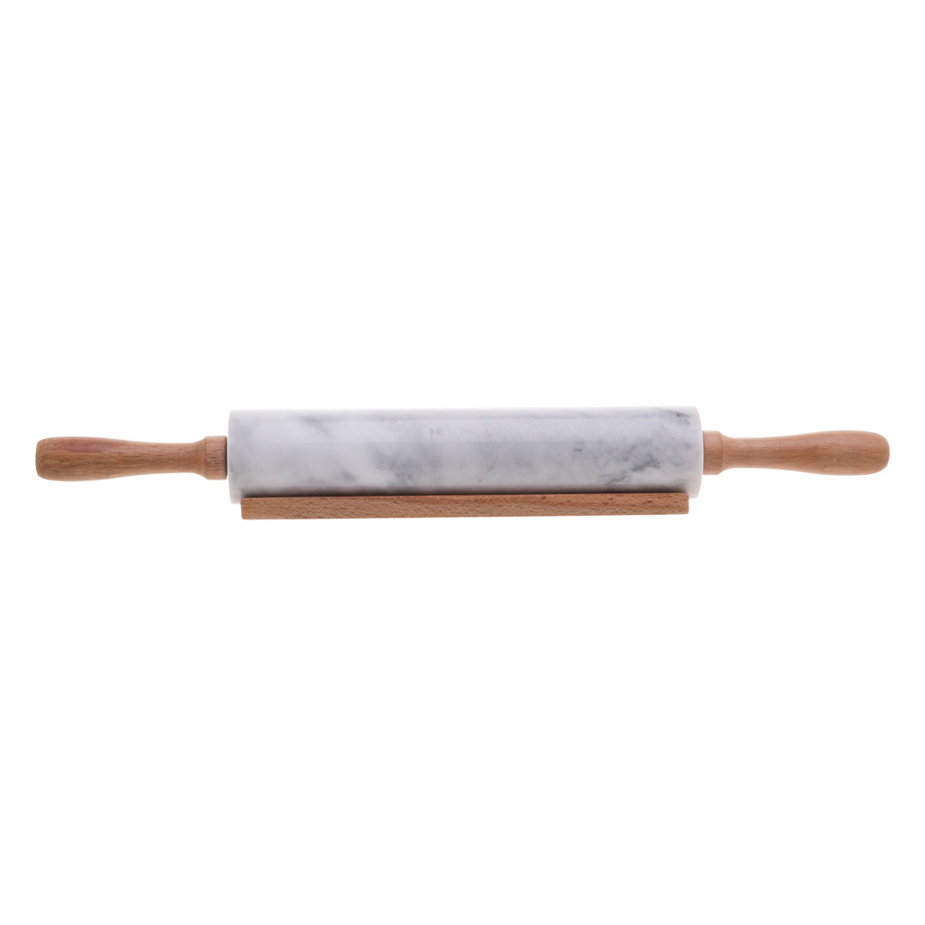 Rolo Para Massa Marin De Mármore E Bambu Natural 44,5x6x6,5cm Lyor