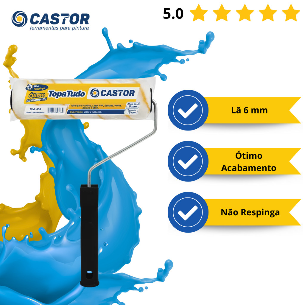 Rolo para pintura Lã Topa Tudo 6MMx15CM c/cabo - Castor