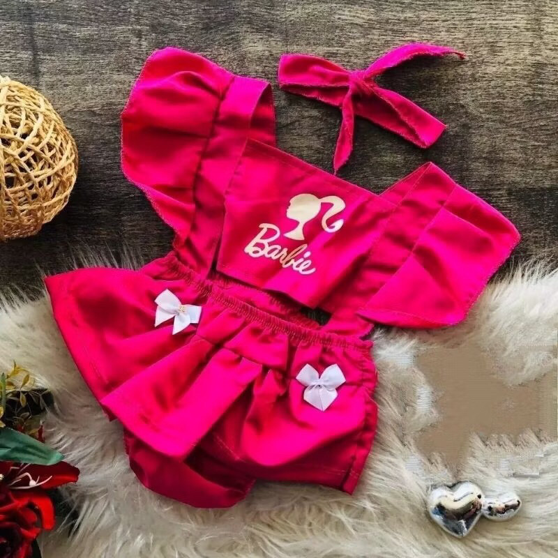 Romper Jardineira Barbie Infantil tematico mesversario menina body+ laço