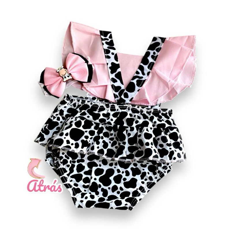 Romper Jardineira Bebê Menina Mesversario Luxo + Laço