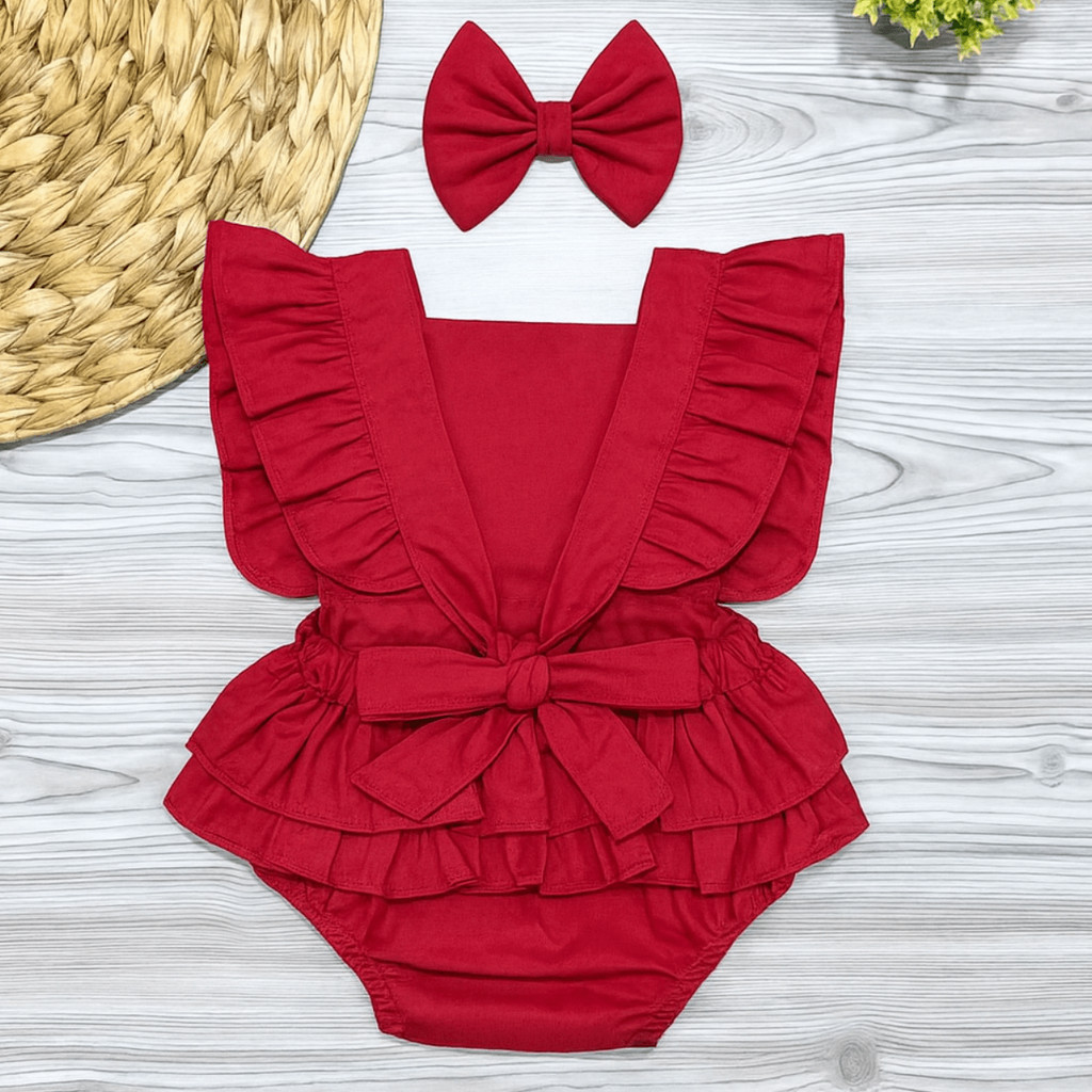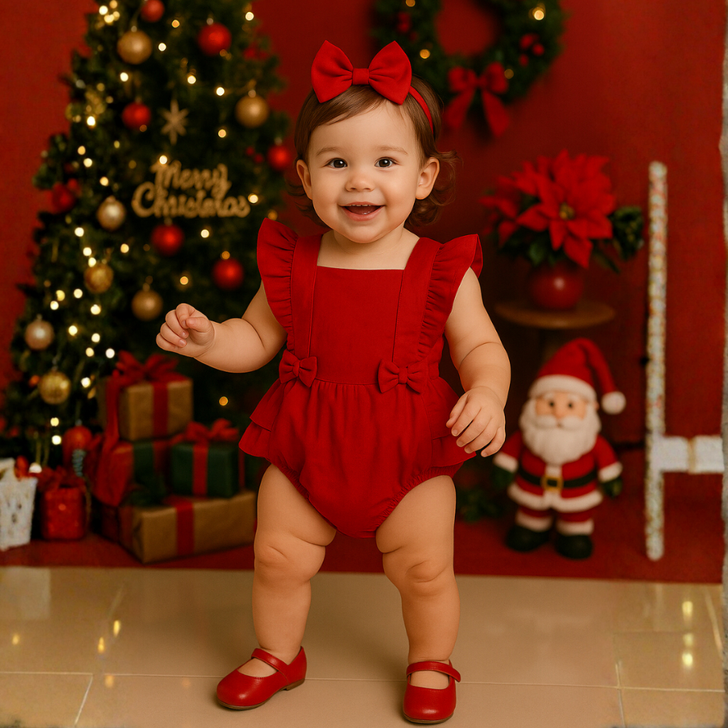 Romper Jardineira Vermelho Liso Roupa Bebê Menina Festa Foto Natal Mesversário