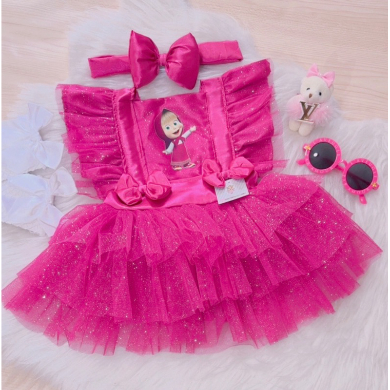 Romper Macha Marsha e o Urso com Touca Body Salopete fantasia vestido jardineira infantil bebê menina