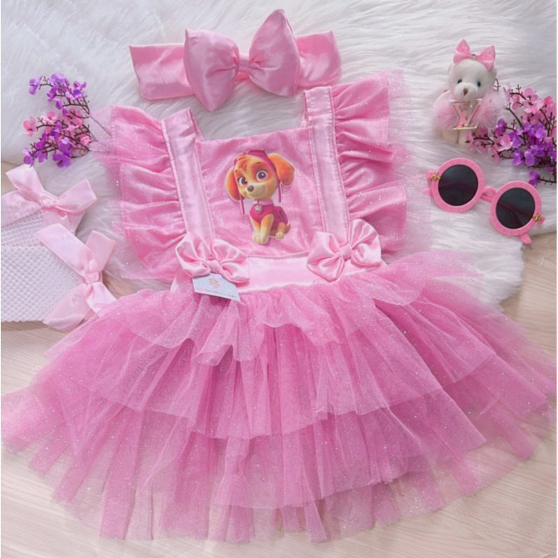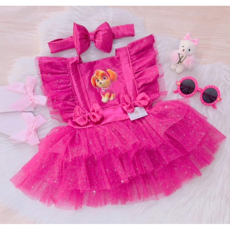 Romper Skye Patrulha Canina Everest Body Fantasia Vestido Salopete Infantil Bebê Menina Mesversario Aniversário
