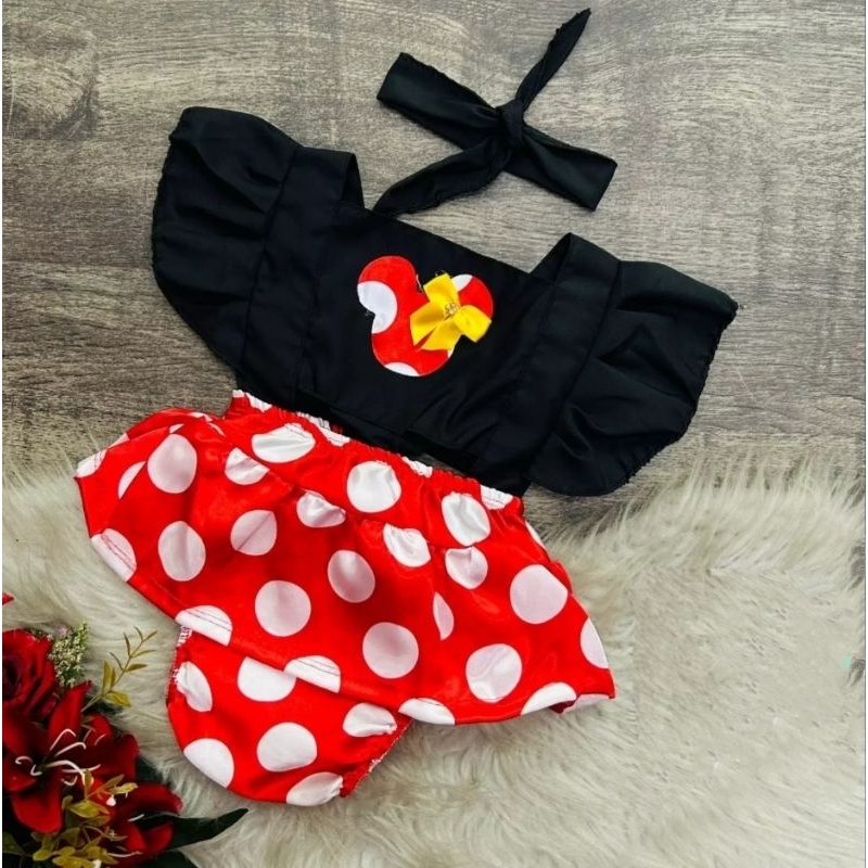 Romper Tematico menina Jardineira Bebe Com Tiara Roupa Bebe