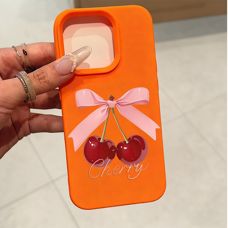 Rosa Bowknot Vermelho Cereja Lichia Design Caso De Telefone Para IPhone 16 17 15 14 13 12 11 Pro Max Plus 16E XS Capa