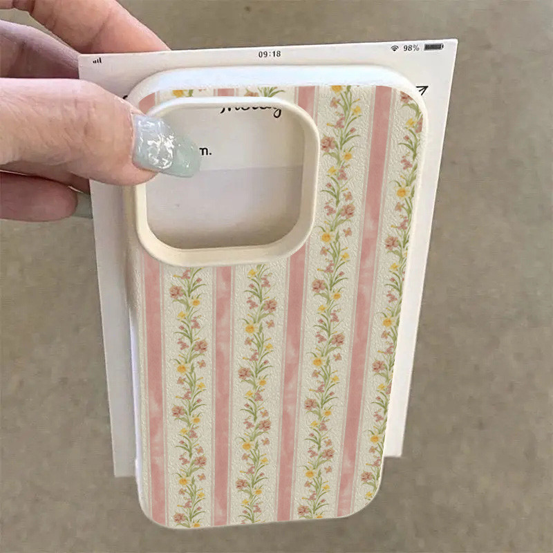 Rosa Floral Listrado Padrão Design Couro Caso De Telefone Para iPhone 16 17 15 14 13 12 11 Pro Max Plus 16E XS Capa