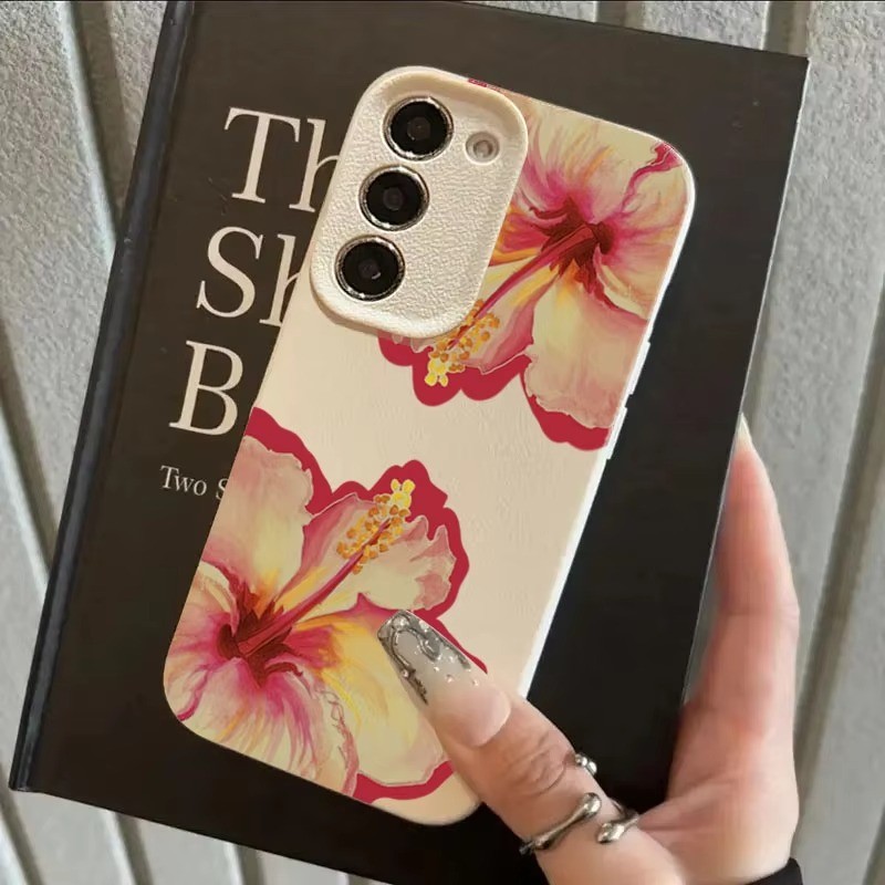 Rosa Hibisco Lichia Caso De Telefone Para Samsung S24 S25 Ultra S23 FE S23 S22 S21 Plus A55 A34 A15 A35 A52 A54 A16 Capa