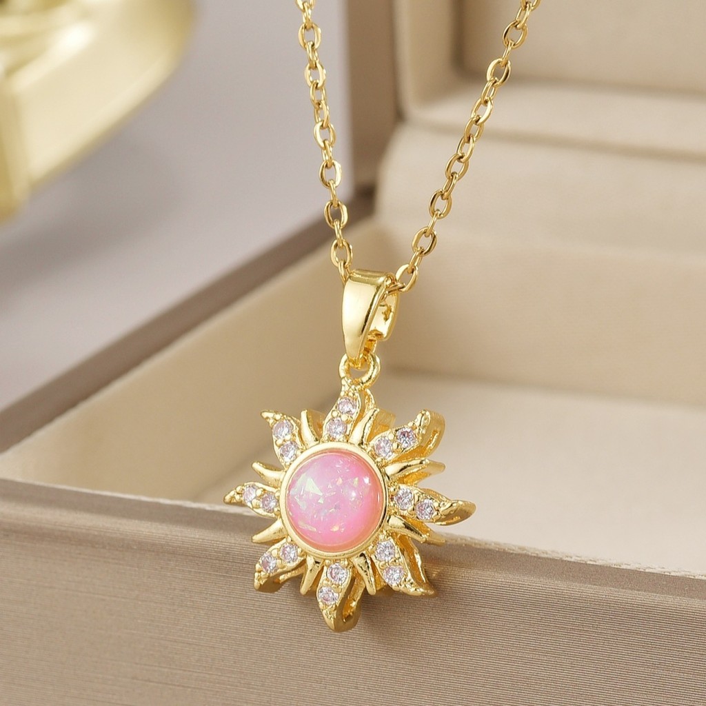 Rosa roxo gradiente sol pingente colar feminino
