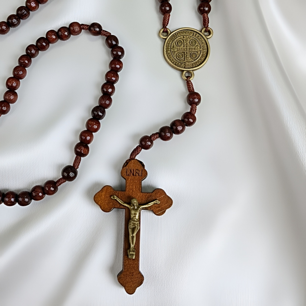 Rosário Grande São Bento Madeira Terço Religioso Mistério Elegante Medalha Milagrosa